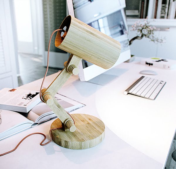 White workspace with white accommodations is also awesome for writer or secretary. White table with white computer set also some books is very amazing. A unique table lamp in wood is very Enticing accommodation in this workspace. A tree on the table with little pink flower is very superb for a women worker.